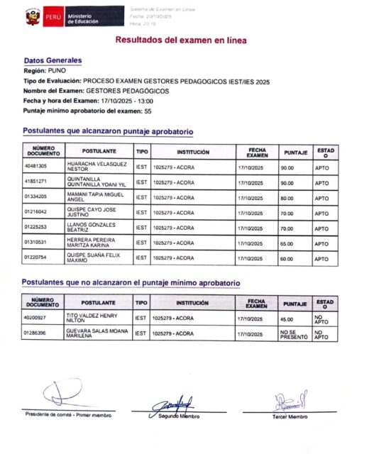 RESULTADOS PARCIALES DEL PROCESO DE ENCARGATURA DE PUESTO O FUNCIONES DE GESTIÓN PEDAGÓGICA PARA LOS INSTITUTOS DE EDUCACIÓN SUPERIOR TECNOLÓGICA 2025